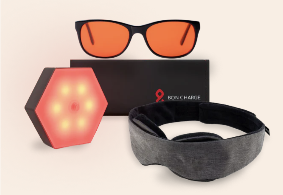 A comprehensive sleep support kit designed to enhance circadian rhythm management for deep, restorative sleep. This kit includes blue light-blocking glasses, a blackout sleep mask, and an emotion sensor nightlight, all aimed at reducing stress and improving sleep quality. You’ll start seeing improvement in just a few nights, and enjoy better blood sugar control and a refreshed start to your day.