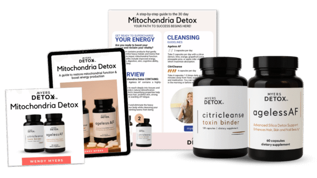 - Mitochondria Detox: this kit includes the Ageless AF silica formulation and CitriCleanse grapefruit citrus pectin. Together, these supplements are the most potent and effective at supporting the body’s ability to detox. Learn more at MitochondriaDetox.com